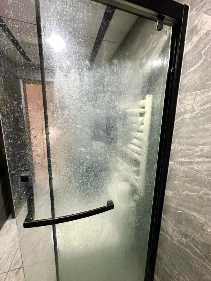 卫生间玻璃隔断真的很鸡肋,水垢根本清洁不干净,每次打扫都是一个大麻烦。
