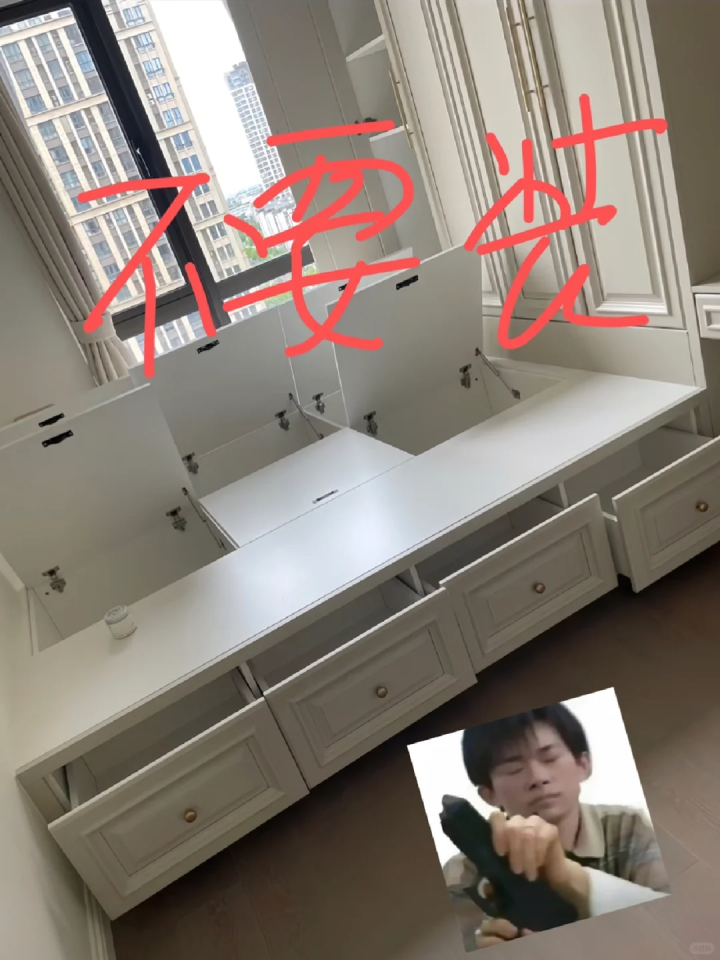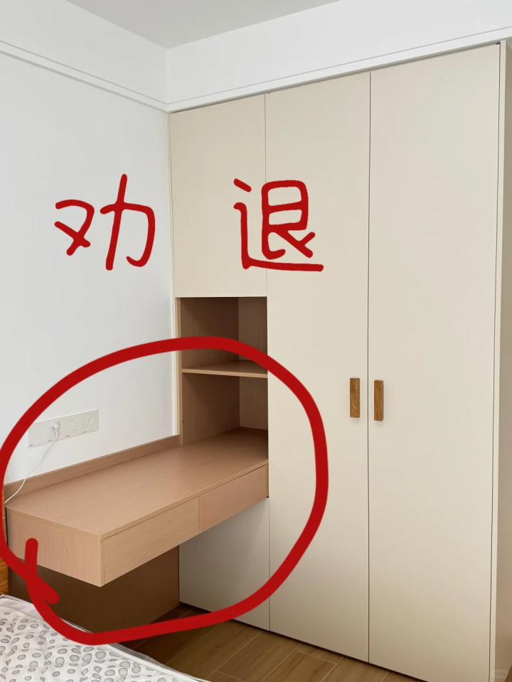 在做柜子时,99%以上的小伙伴都会选择全屋定制,毕竟现在的木匠真的很难找,可在全屋定制时,千万不要把衣柜和化妆桌做一体化的设计。